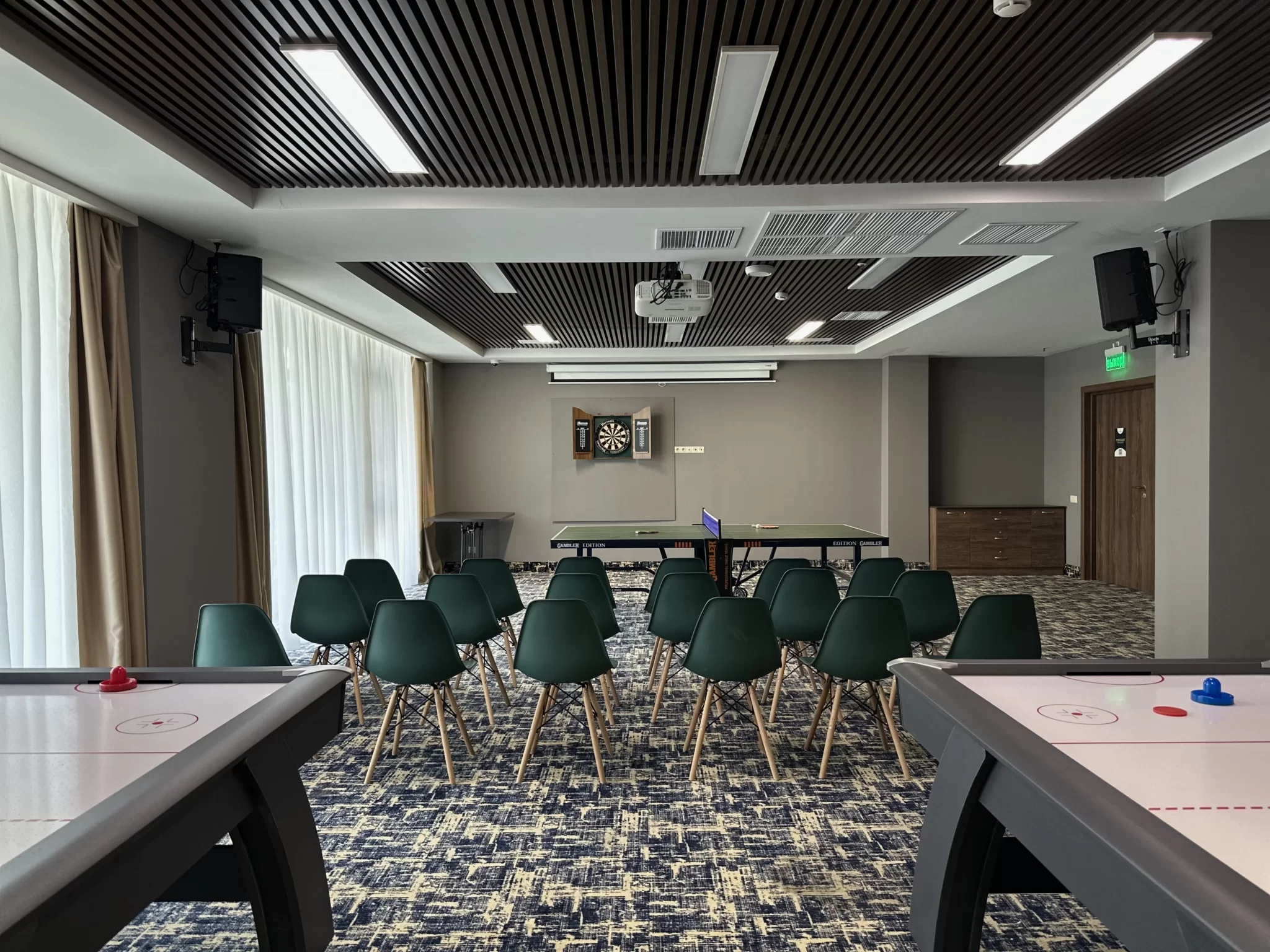 В клубе ежедневно команда анимации проводит мероприятия по настольным интерактивным играм, в том числе: Голландский бильярд, #НеБадминтон, магнитное поле, «21 шар», «Вспомнить всё» и другие.