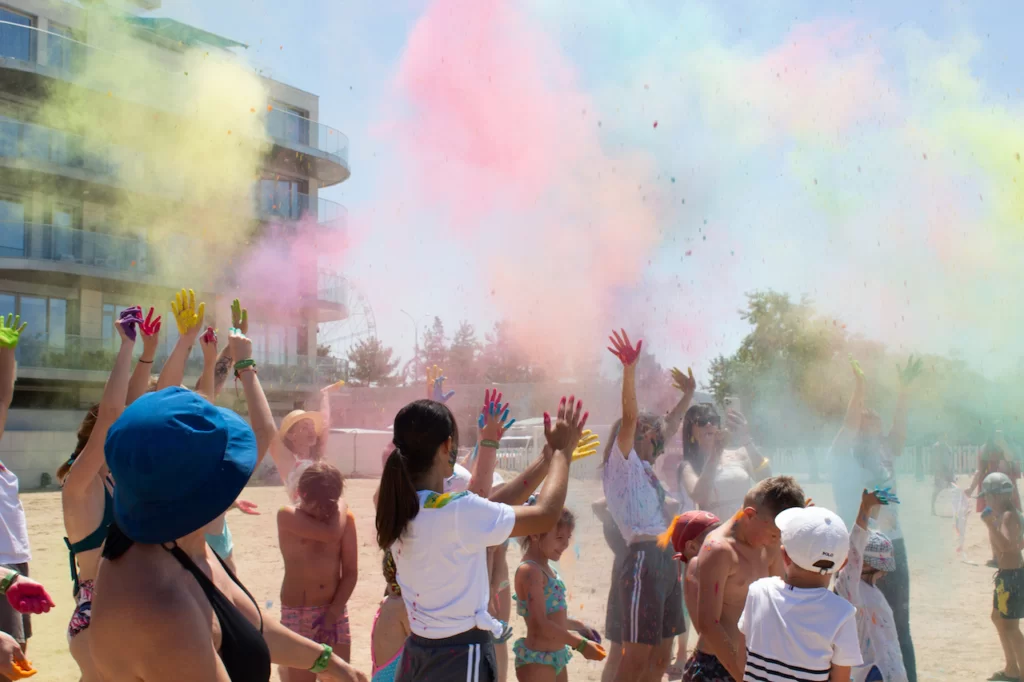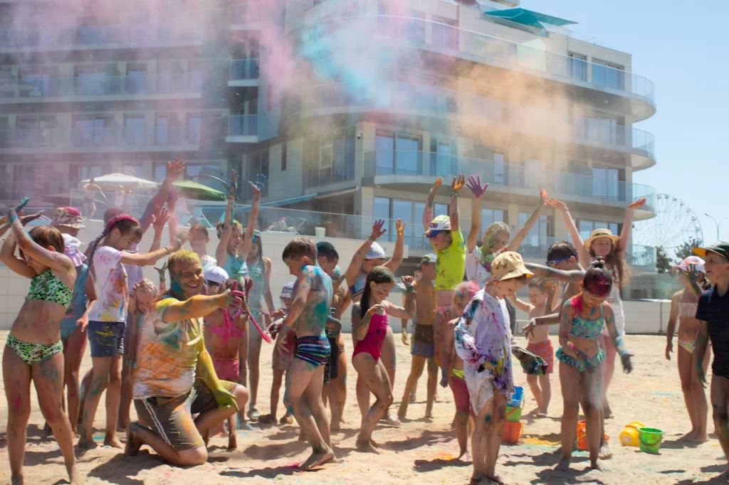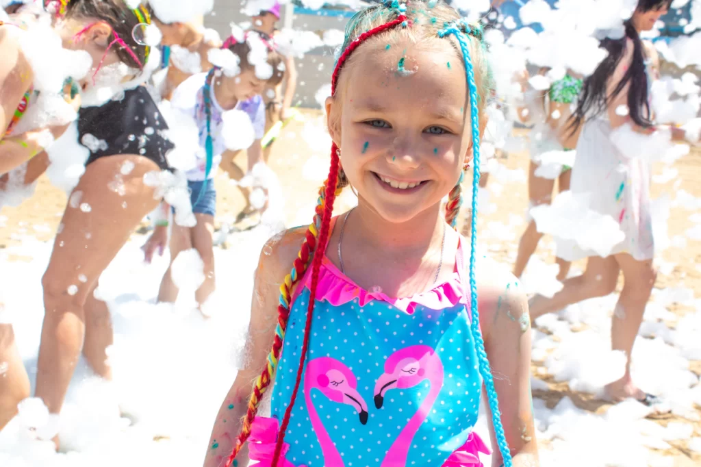 Праздник начался с шоу-программы по капоэйре, эффектные показательные выступления сменились мастер-классом для наших гостей, после спортивных активностей родители вместе с детьми смастерили, а потом запустили в небо десятки воздушных змеев. Далее праздник продолжился яркими залпами красок холи и пенной дискотекой. Весь день команда анимации развлекала деток на творческих мастер-классах, играх в бассейне. На pool party взрослые и детки восхищались удивительным бармен-шоу, а также попробовали сочные коктейли.