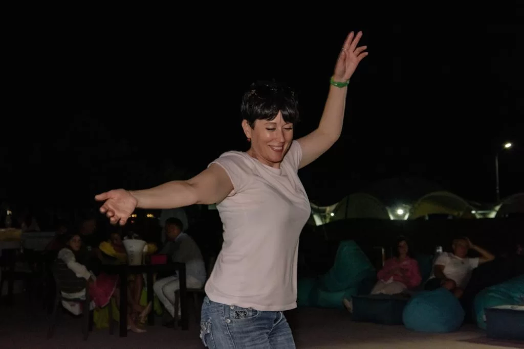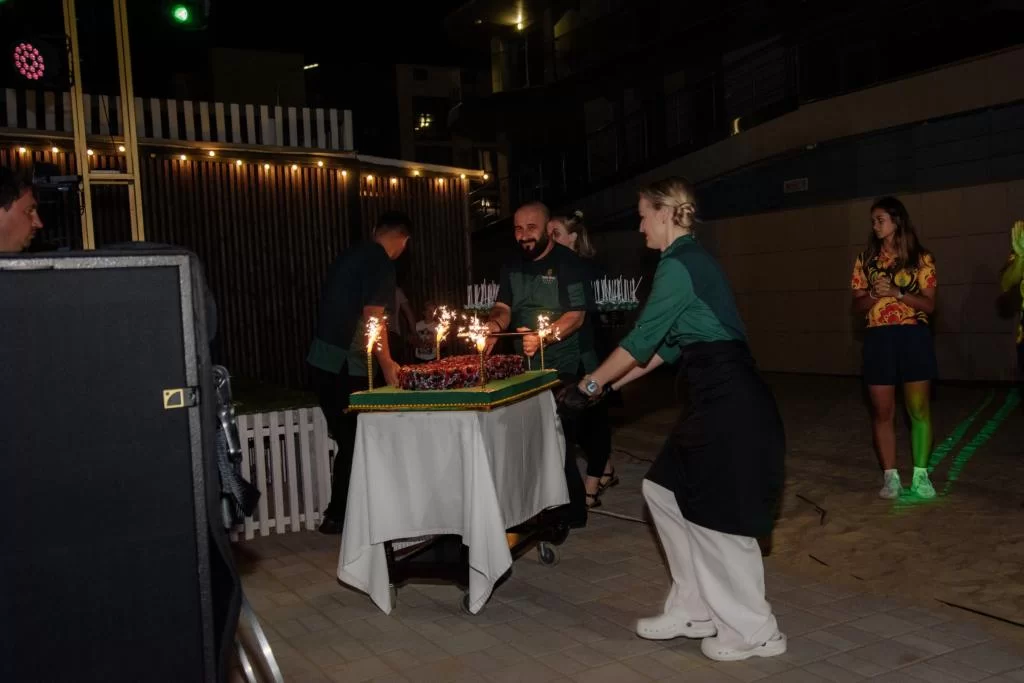 На закате на территории пляжного комплекса началась гриль вечеринка при участии команды мясных повелителей Шеф кейтеринг «Вкус и цвет». В передвижном смокер-гриле 18 часов томился знаменитый брискет и подрумянивался до золотистой корочки барашек на вертеле, а также многообразие овощей на гриле, индейка в цитрусовой глазури, запечённая свинина в смокере на вишневых ветках, нежные люля-кебаб и другие угощения.