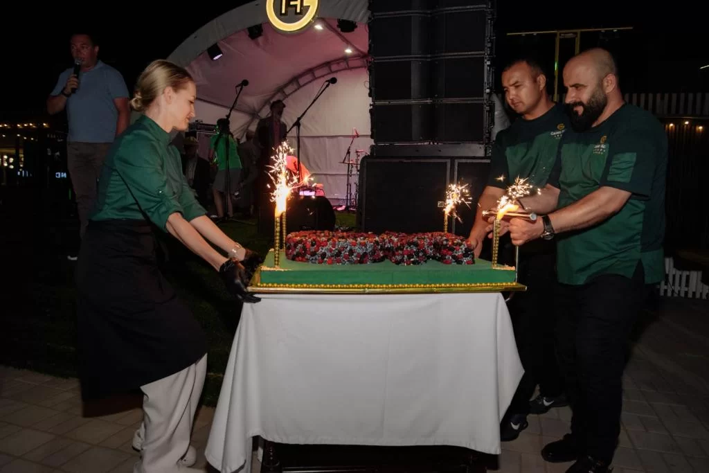 Кульминацией вечера стало эффектное выступление мировых звезд русского фолка — группы «Отава Ё» из Санкт-Петербурга. Гости водили хороводы и танцевали, наслаждались летом, праздником и теплым морским бризом. В финале праздника шеф-кондитер Татьяна Лазарец вместе с командой поваров выкатила огромный многослойный торт в форме букв «G H», украшенный сезонными ягодами. Под залпы салюта гости наслаждались сладким десертом и послевкусием праздничных мероприятий в честь празднования Дня рождения Гранд Отель Анапа.
