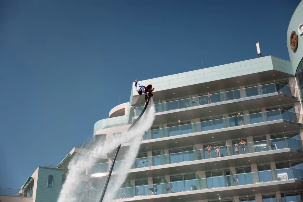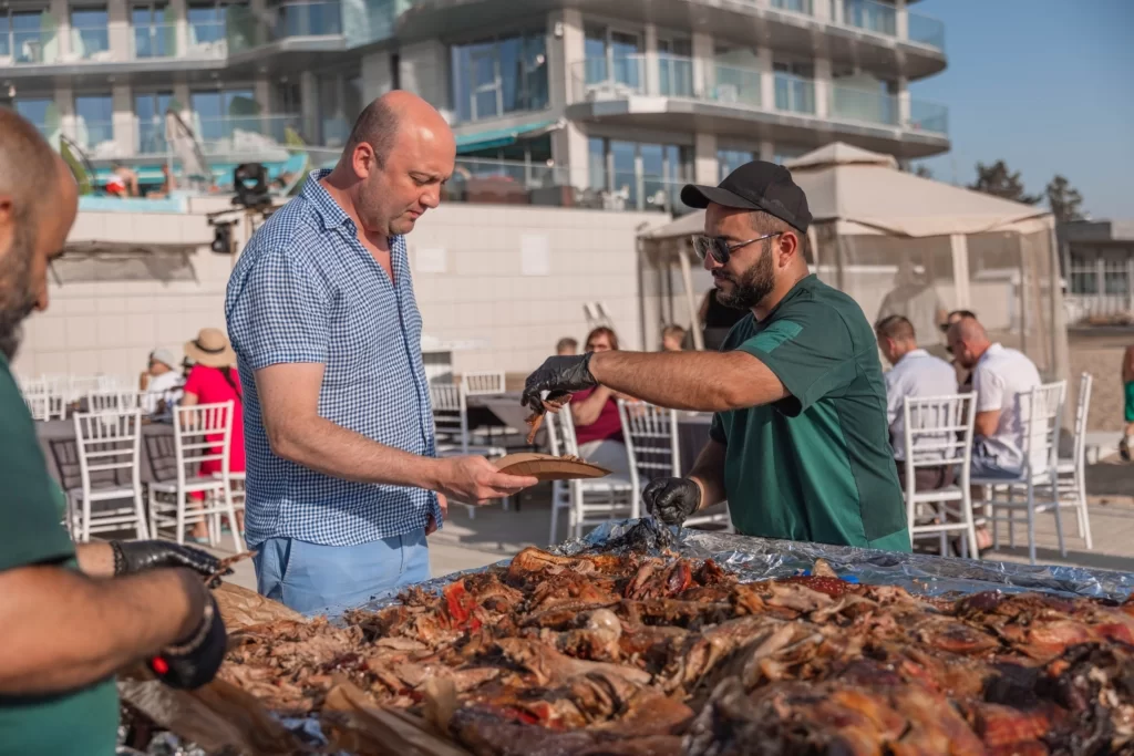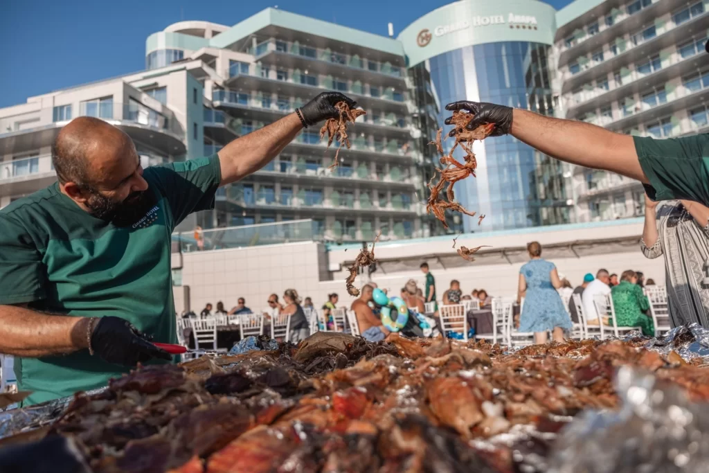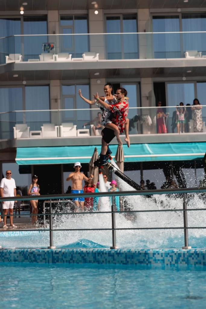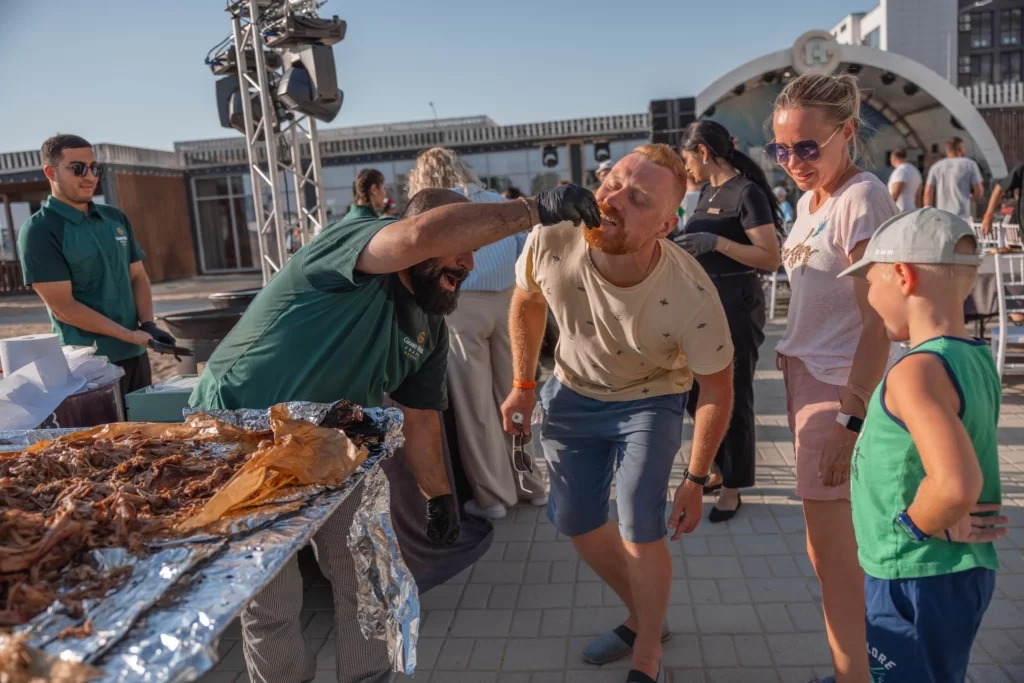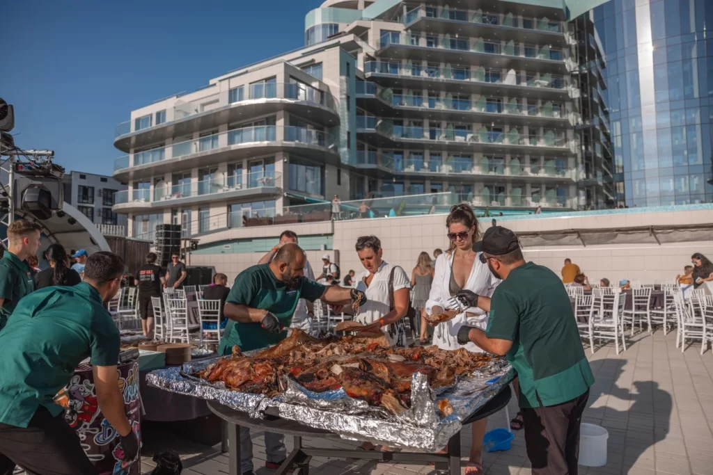 В праздничной программе была пенная дискотека, арт-флешмоб, бармен-шоу, роскошный банкет в ресторане «Панорама», пятиярусный торт в морском стиле, экстремальное шоу флайбордиста, ужин на закате прямо на берегу моря, на котором шеф-повар ресторана «Сансет» презентовал приготовленного в печи бычка весом более 200 кг, концерт восхитительной Виктории Дайнеко. Благодарим всех, кто приехал разделить с нами этот чудесный праздник!