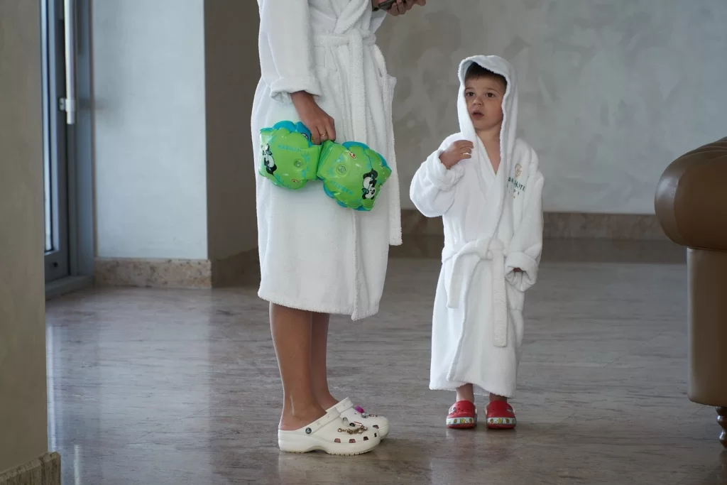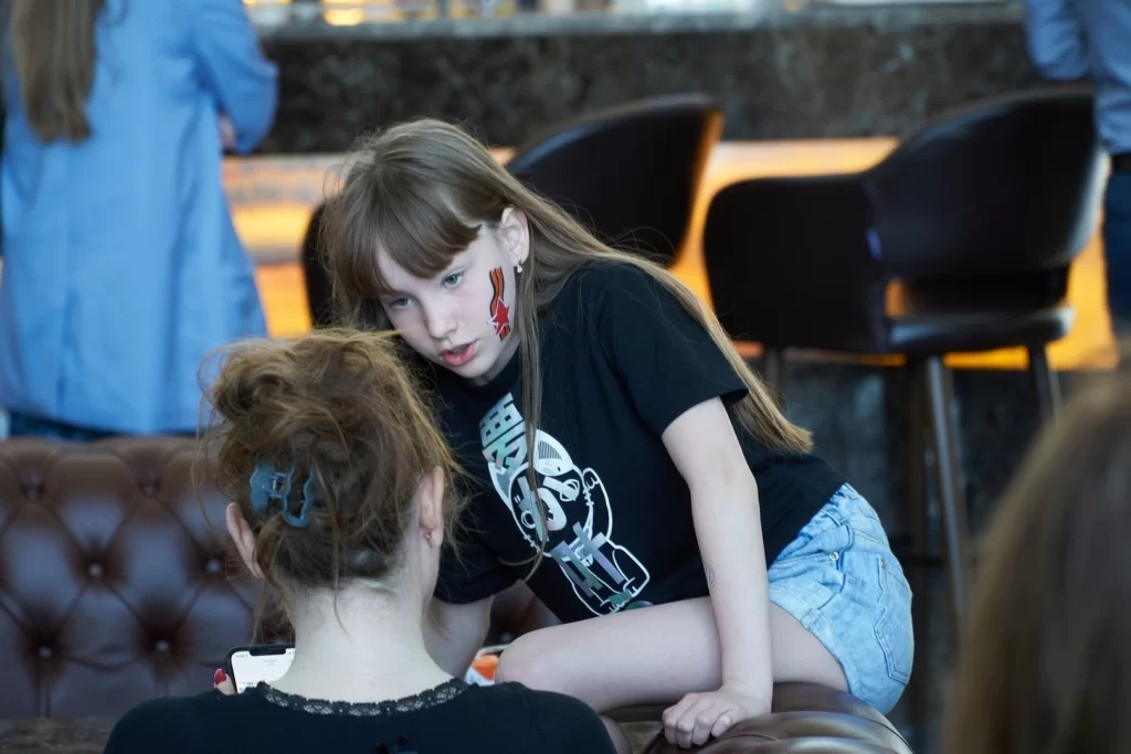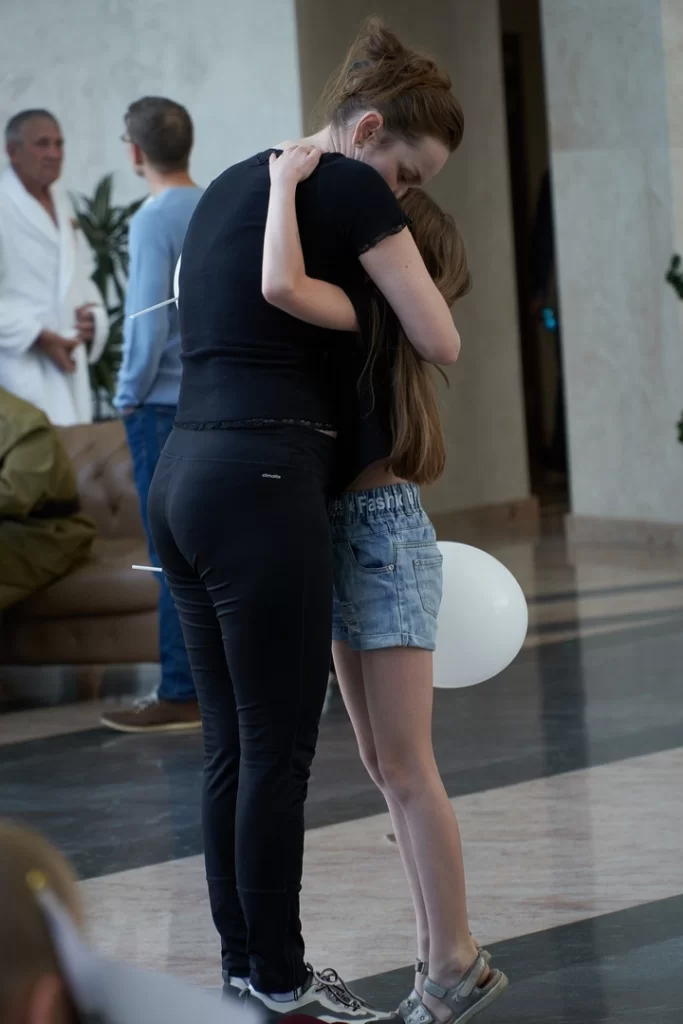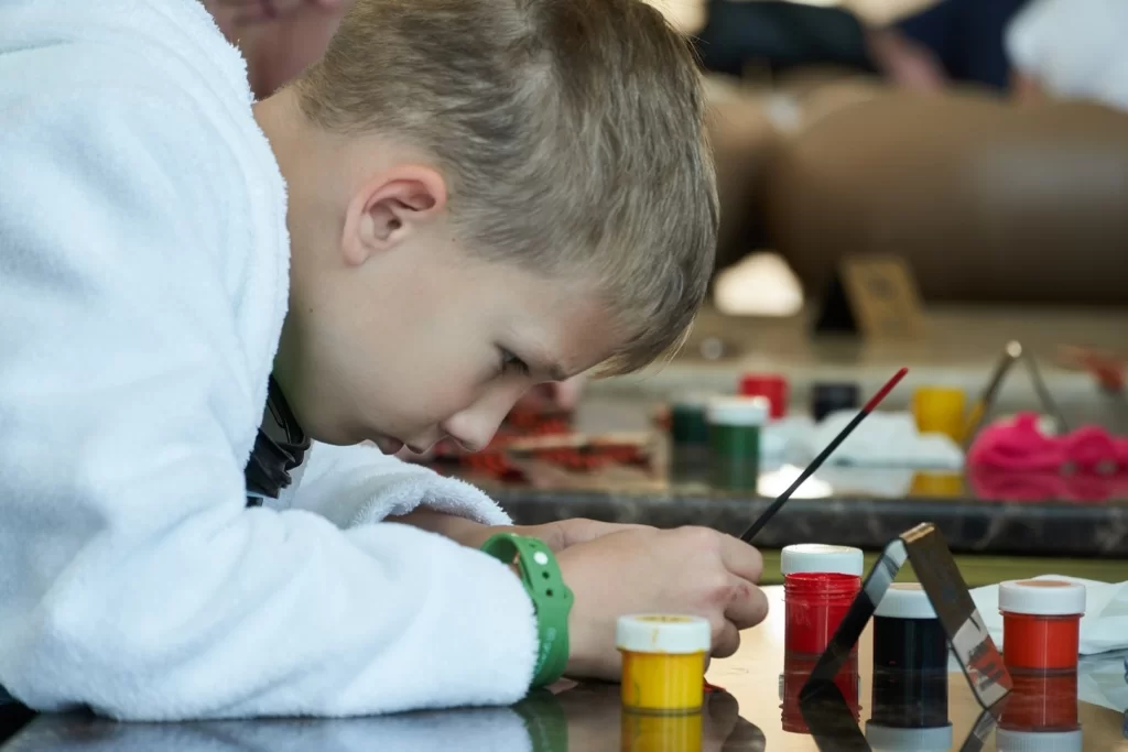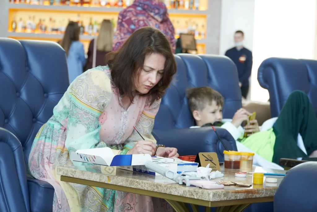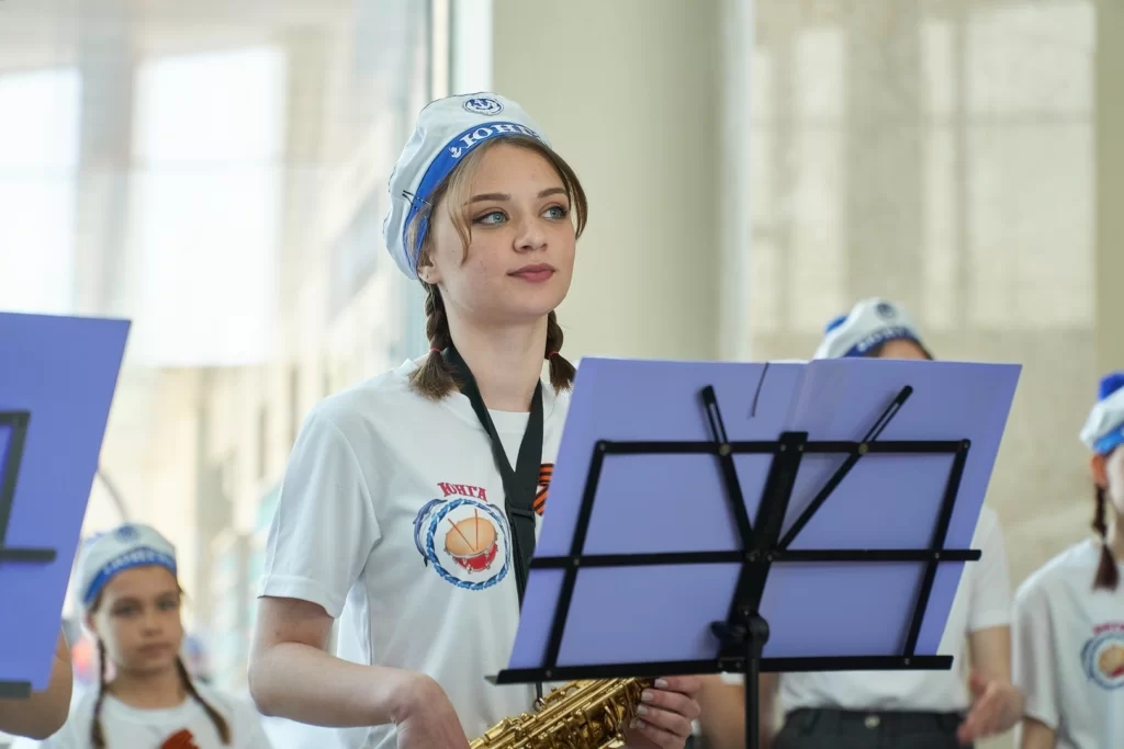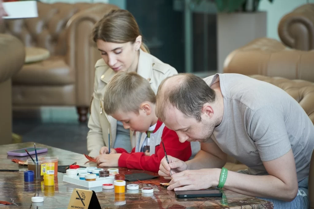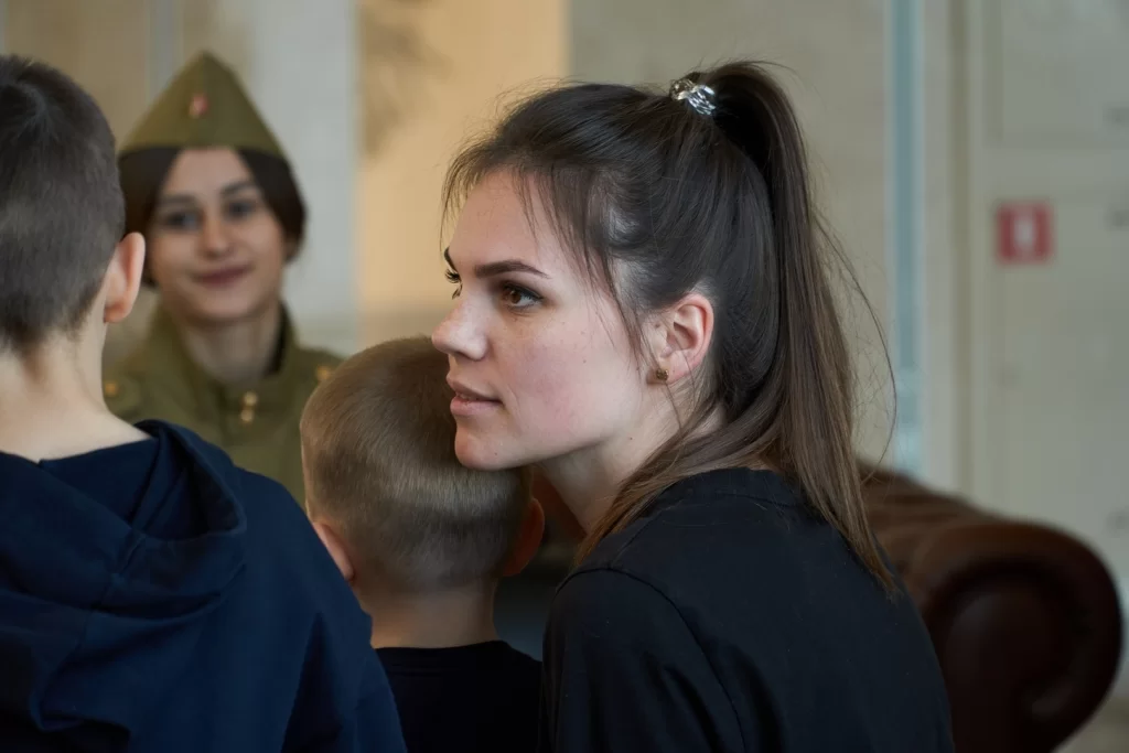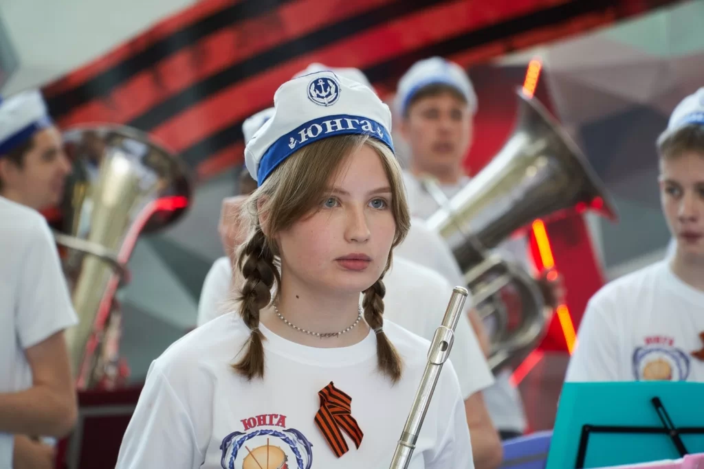 С раннего утра в атриуме юные гости вместе с родителями, бабушками и дедушками делали памятные значки, самолетики, подпевали знаменитым песням военных лет, а в полдень вместе прошли к берегу моря вместе с фотографиями своих родственников, участвовавших в Великой Отечественной войне.