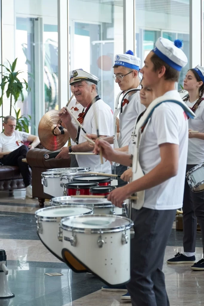 Вальс в исполнении Ксюши с Пашей и Ромы с Наташей, исполнение песни «Катюша» командой ресторана «шведской линии» Panorama и службой анимации, а также задорное исполнение песен военных лет ударно-духовым оркестром «Юнга» создали неповторимую атмосферу и наполнили этот день особенным смыслом.