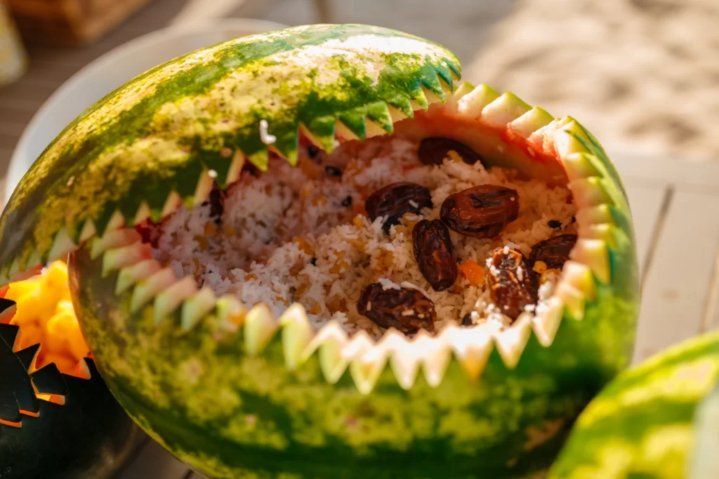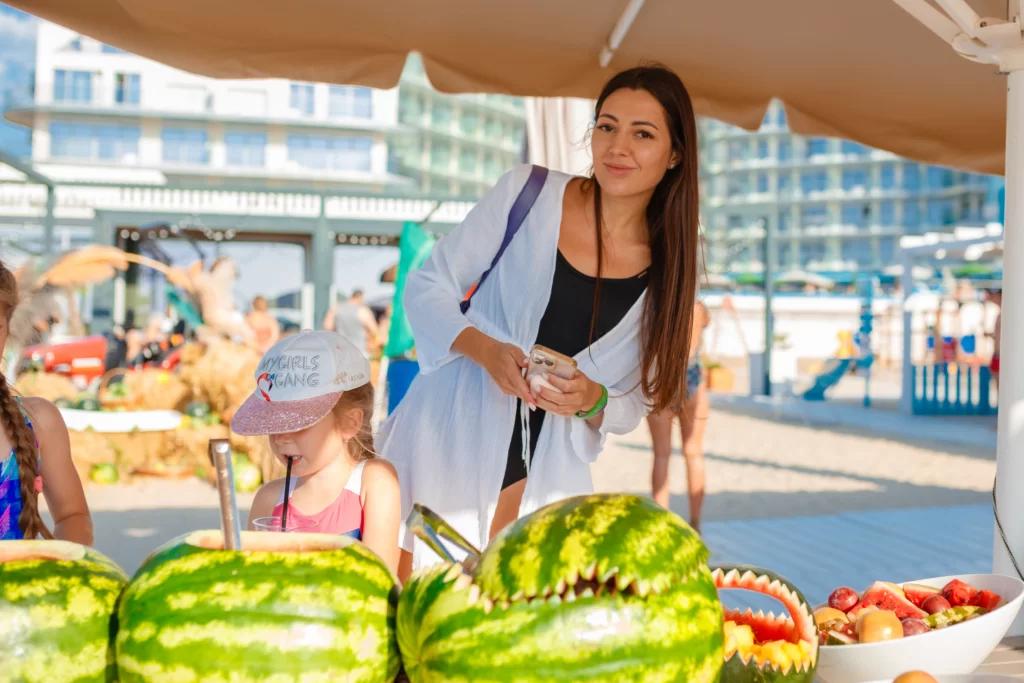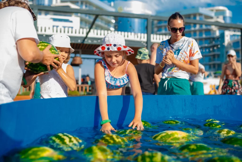 Грандиозным сочным фестивалем «Арбузный фреш» мы отметили окончание лета. На празднике гости устроили арбузный бум, играли в боулинг арбузами, мастерили величественные полосатые шлемы и попробовали поймать на рыбалке самый большой арбуз. На фуд-корте команда шеф-поваров ресторана Sunset и ресторана Panorama устроила арбузный пир — смузи в арбузе, плов и морепродукты, приготовленные на огне в арбузе, арбузы на гриле со стейком и ананасом, арбузные десерты и даже освежающий гаспачо. Участники мероприятия по достоинству оценили впечатляющую фотозону, а также ледяной бассейн с арбузами.