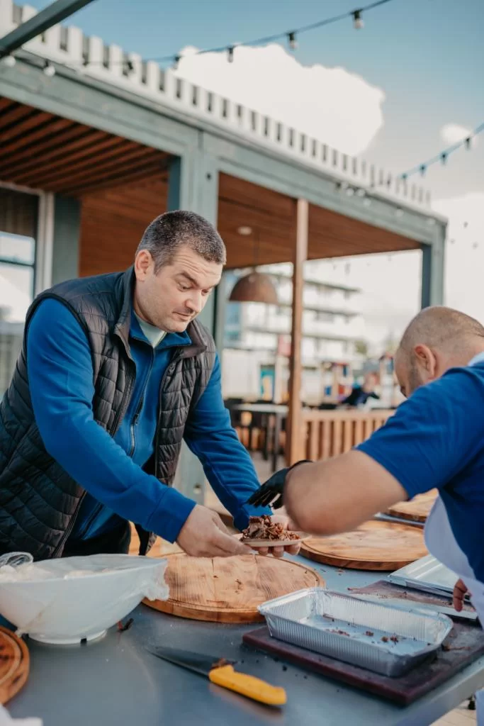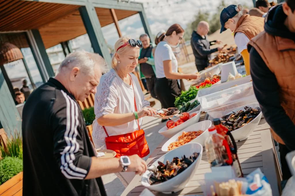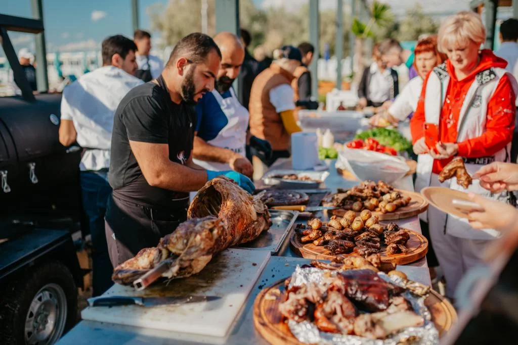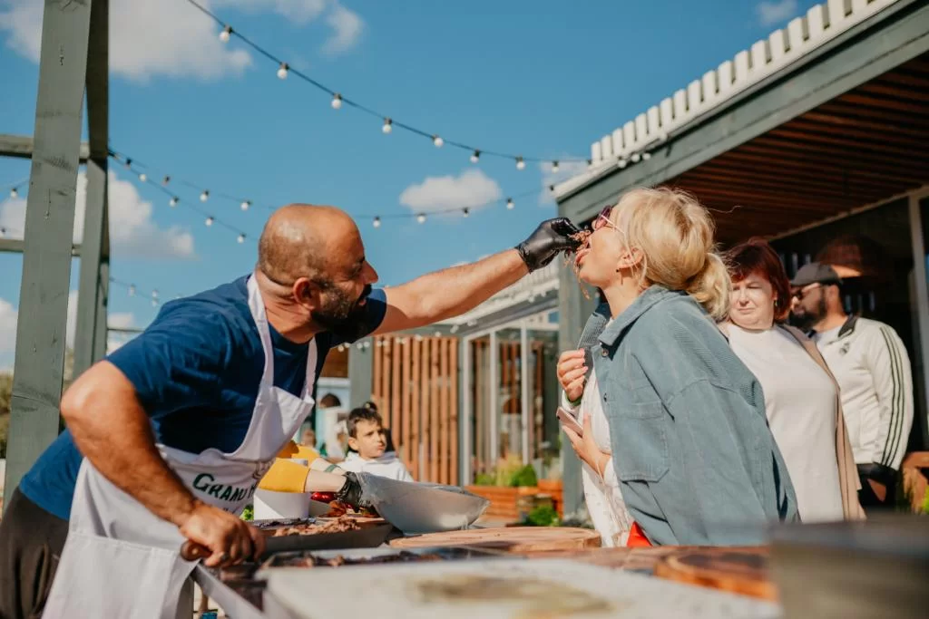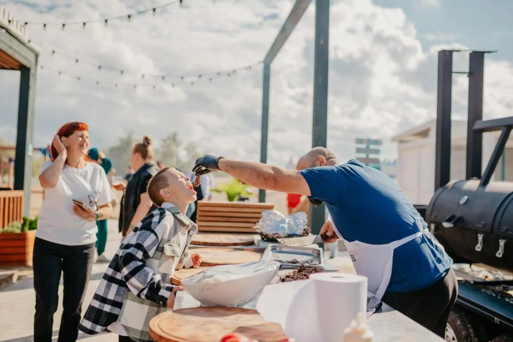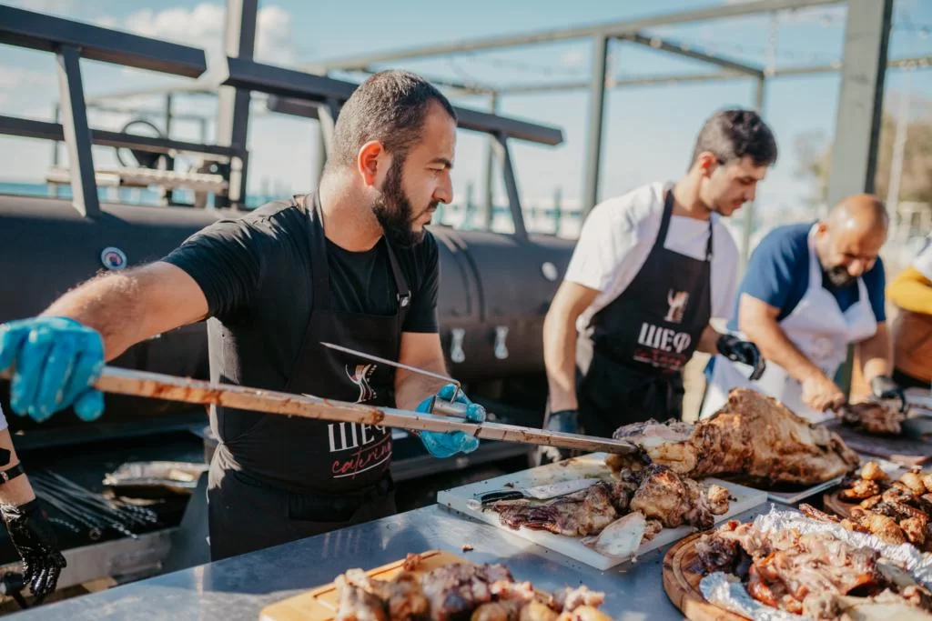 Благодаря партнёрам фестиваля Chef Catering «Вкус и цвет», гости праздника наслаждались ягненком на вертеле, нежнейшим брискетом из мраморной говядины, креветками и мидиями, свининой из смокера, домашними колбасками и крылышками bbq, а также овощами на гриле.