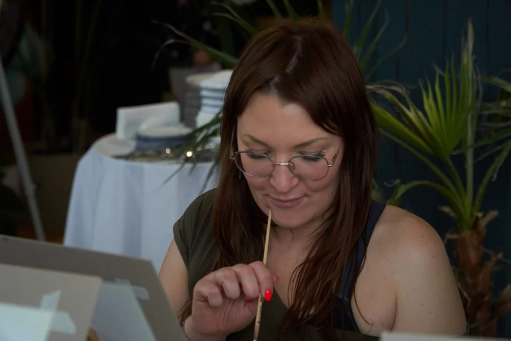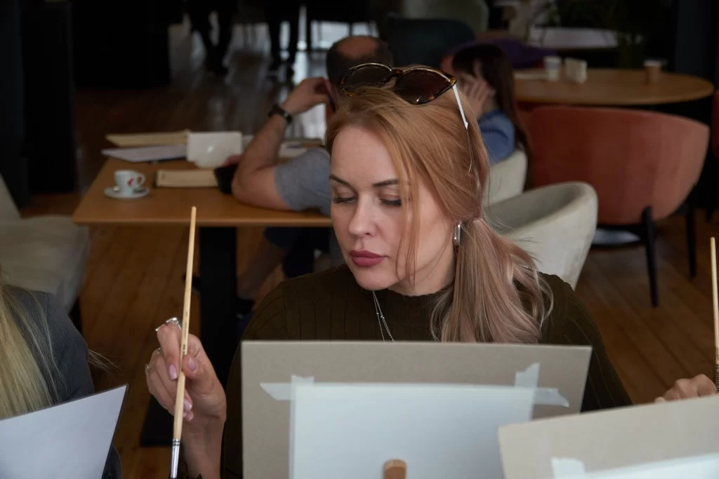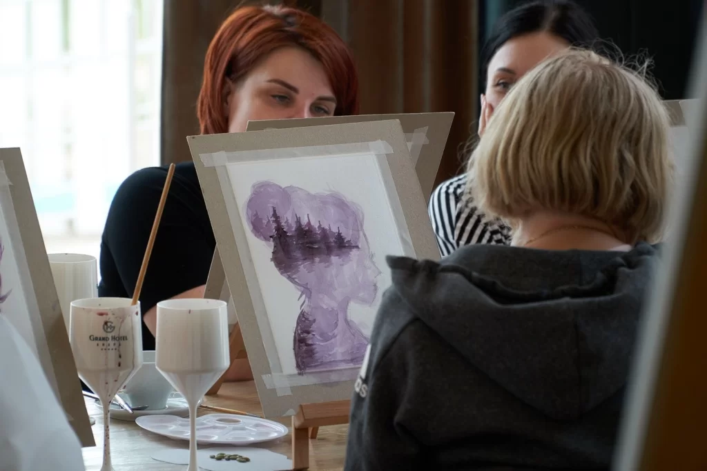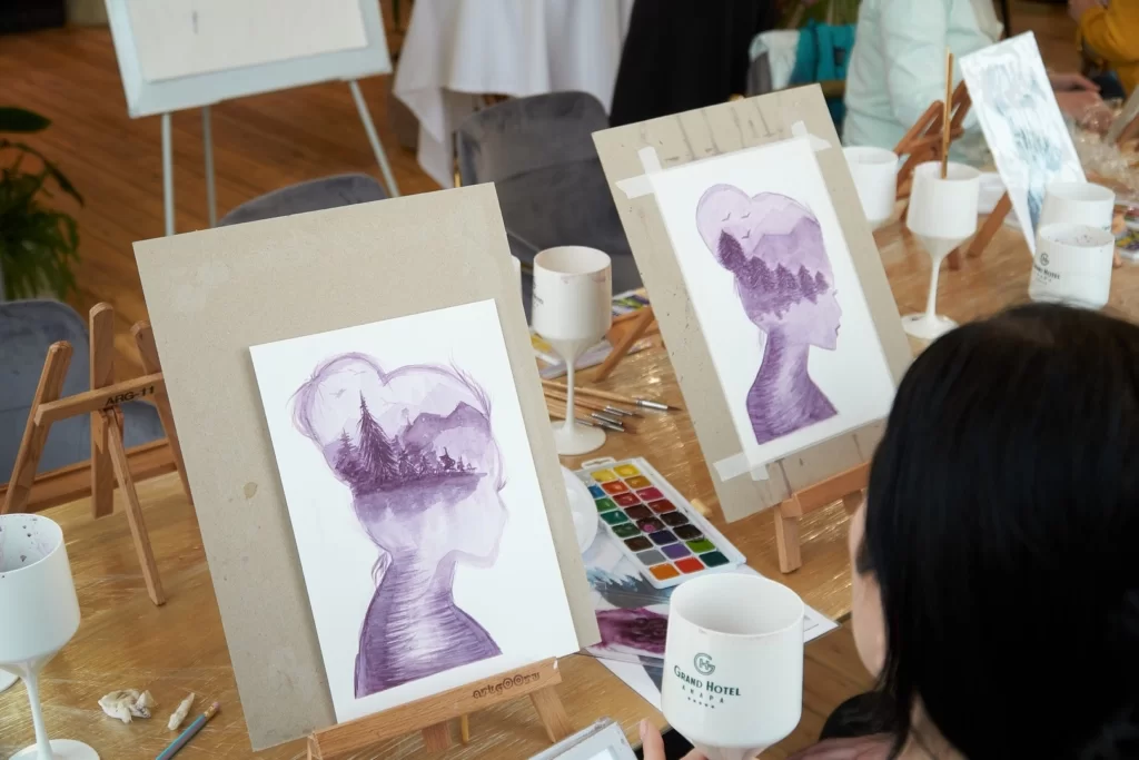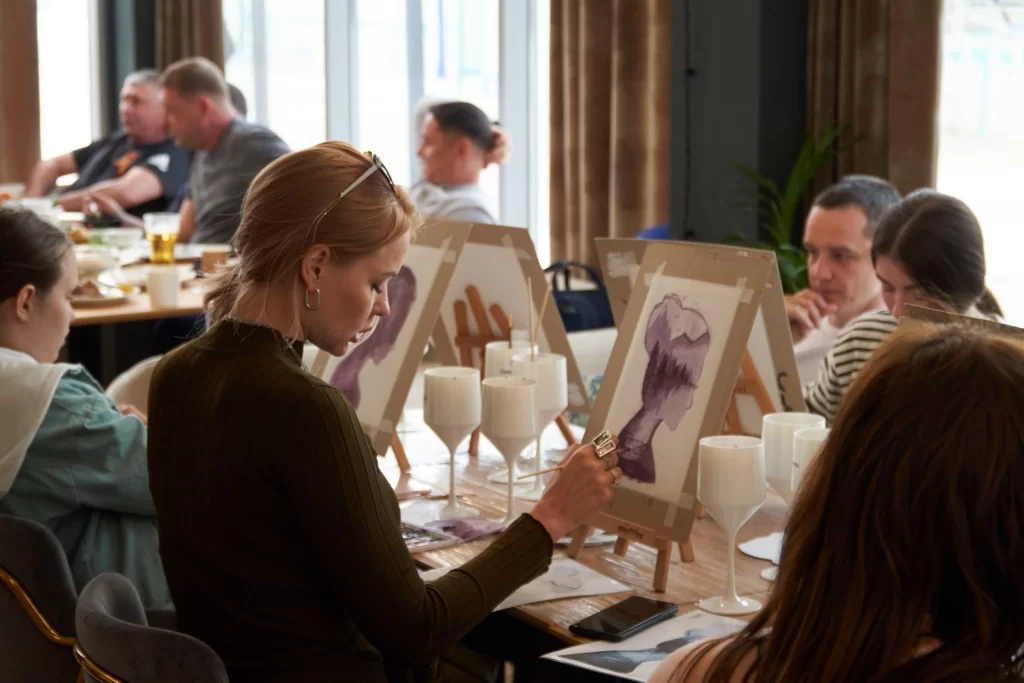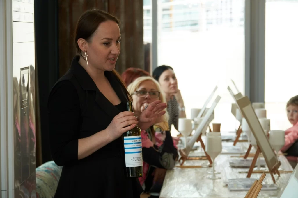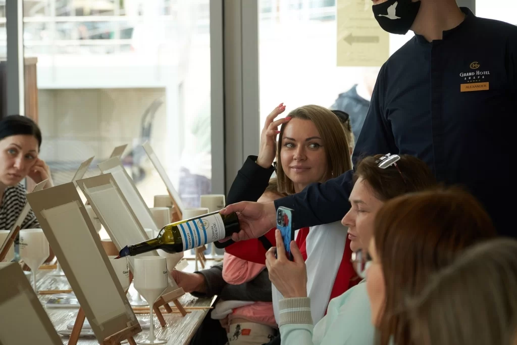 С винной живописи все участники забрали домой уникальные рисунки, созданные вином, а также яркие эмоции от процесса и дегустации вина от наших партнеров Chateau Tamagne.