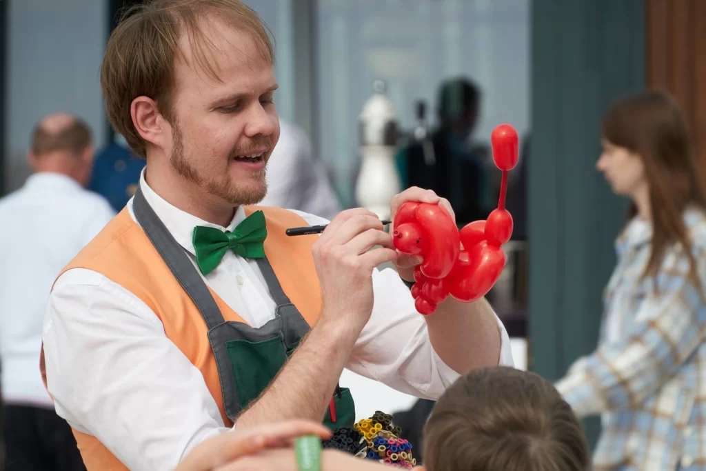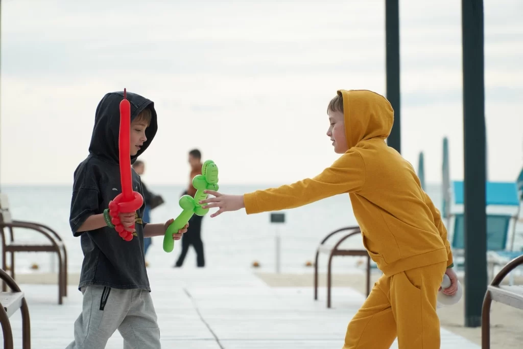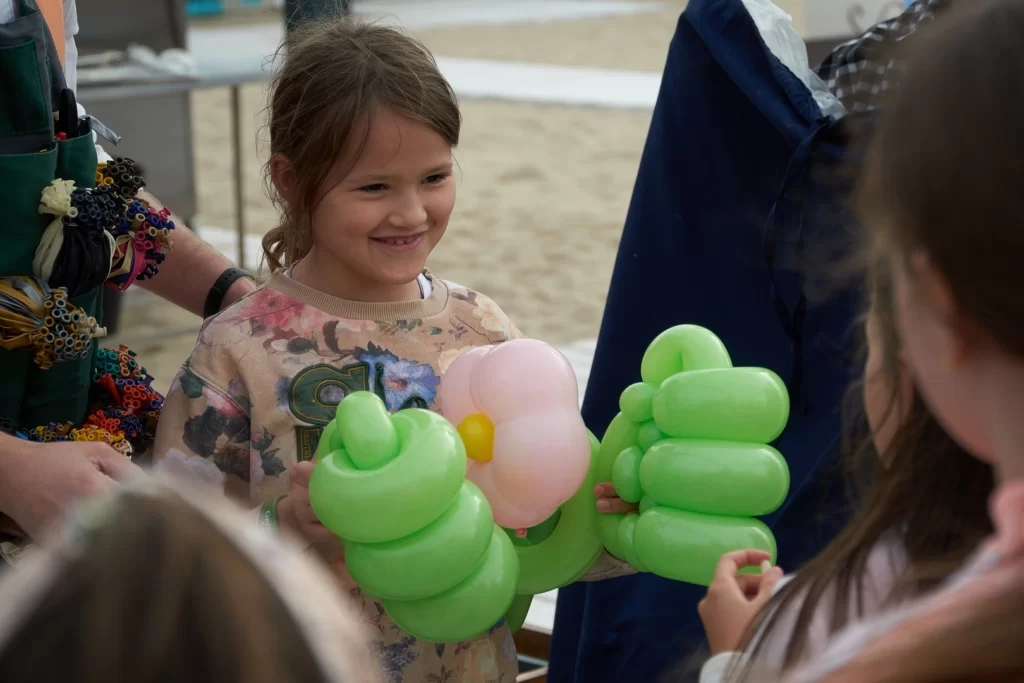 Потом были шахматы прямо у кромки воды, единороги, мечи, котята и щенки из шариков, шоу сахарной ваты и интерактивные спектакли для всей семьи.