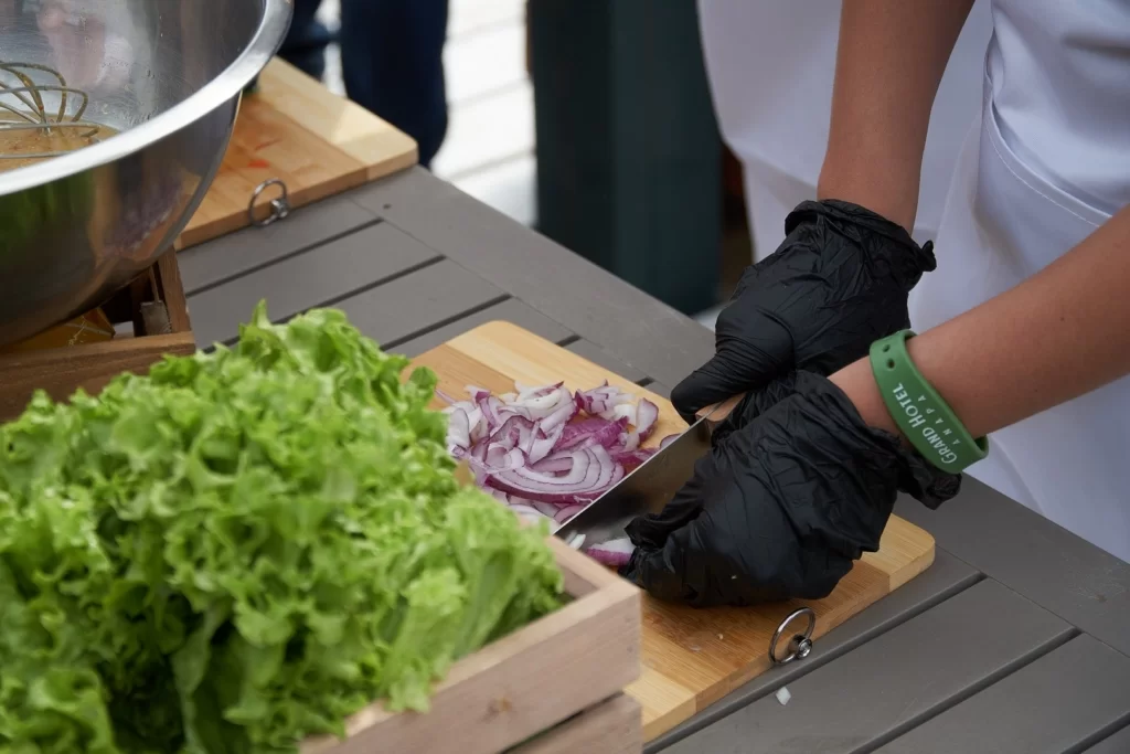 На детском мастер-классе детки сделали забавные бургеры и тут же с гордостью их съели. Взрослые устроили настоящий кулинарный баттл вместе с шеф-поваром ресторана «шведской линии» Panorama.