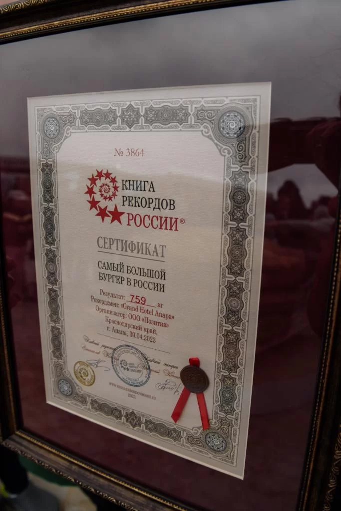 В день открытия Второго Ежегодного «Гранд Гриль Феста» команда под руководством шеф-повара Гранд Отель Анапа Инны Мартя установила Рекорд России, приготовив «Самый большой бургер в России».