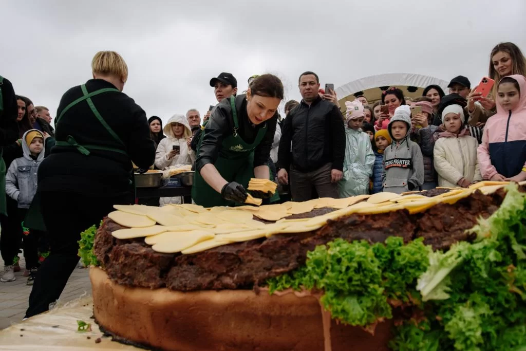Рекорд зафиксировал Главный редактор Книги Рекордов России, кандидат философских наук — Коненко Станислав Анатольевич. Итоговый вес бургера составил 759 кг, высота: 77 см, диаметр: 154 см.