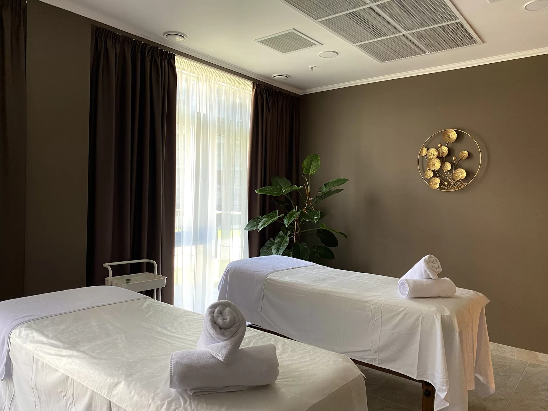 В одном из просторных массажных кабинетов, интерьер которых вобрал в себя лучшие черты восточной и европейской культур, есть уникальная возможность насладиться массажем одновременно двум гостям, а в другом – объединить массаж с уходовыми процедурами для лица и тела.