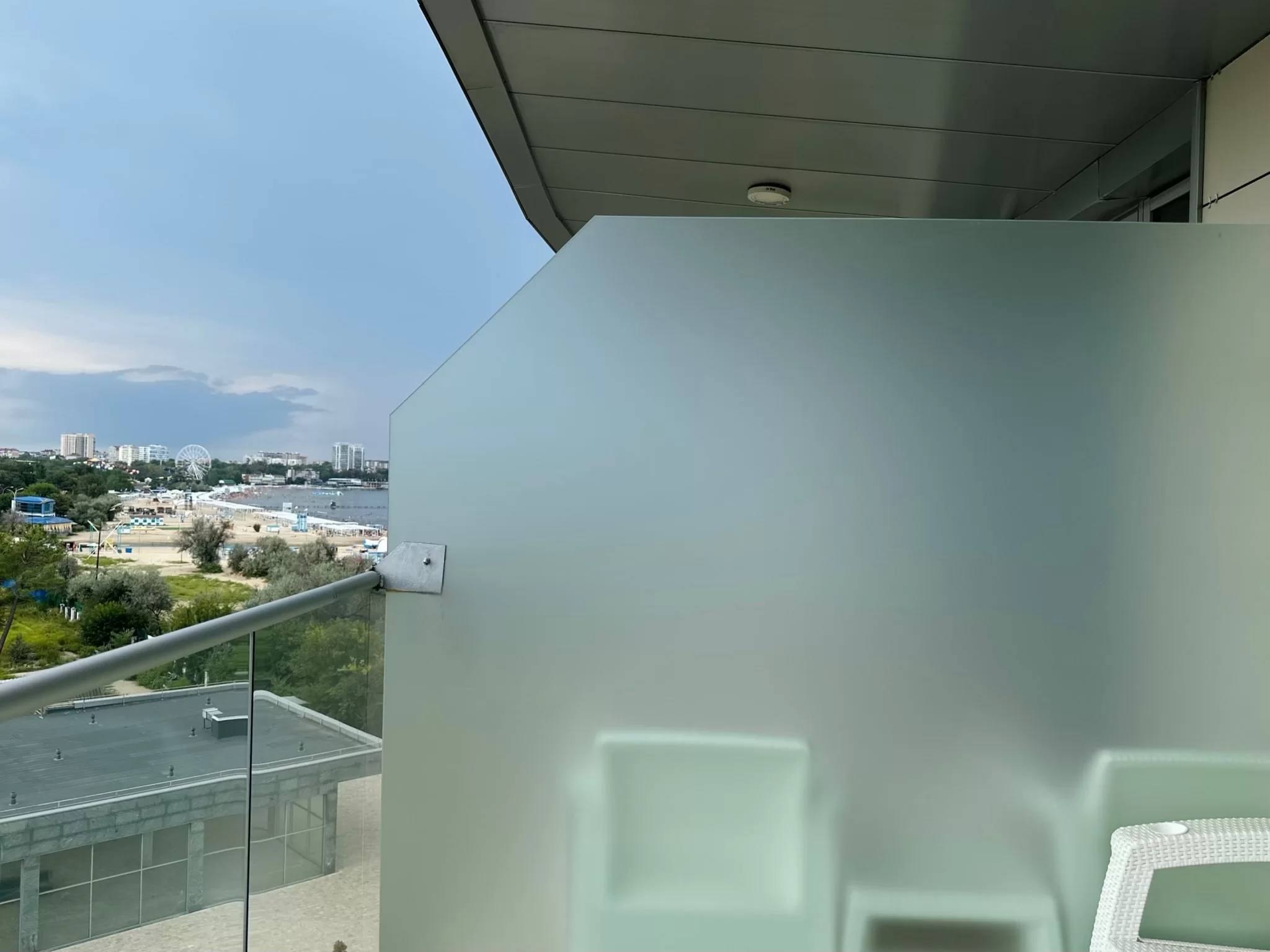 Номер оснащен всей необходимой для комфортного отдыха техникой и мебелью. Дополнительное преимущество: балкон с безопасным ограждением и мебелью, с которого открывается боковой вид на море.